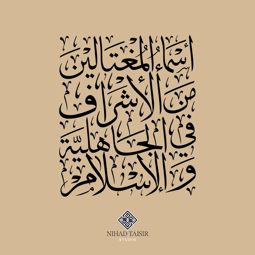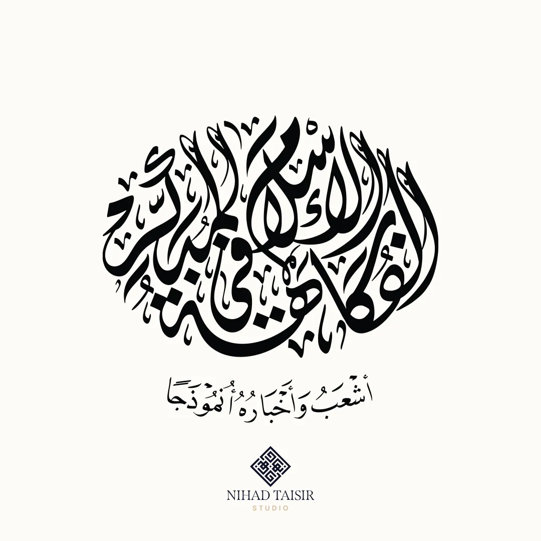 At Nihad Taisir Studio, we present classical Arabic calligraphy written by hand using traditional scripts such as Thuluth, Diwani, Diwani Jali, and Ijazah.