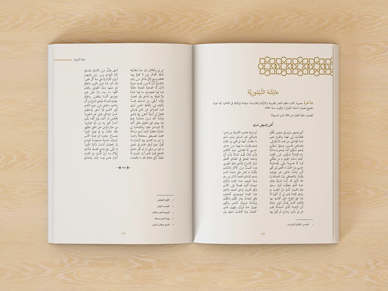 Arabic layouts are built with respect for classical typographic rules. The text is treated as a primary reading system, not decoration, to maintain clarity, rhythm, and readability across print and digital.